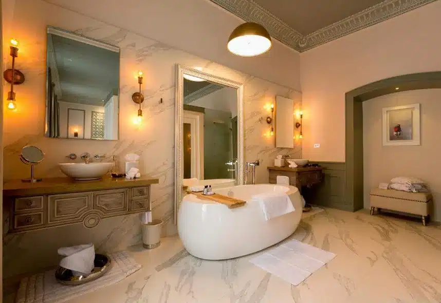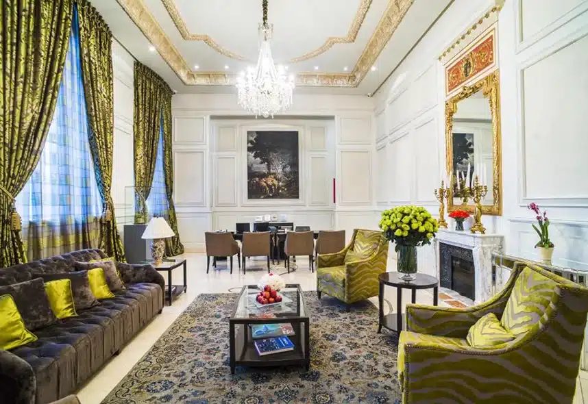 De decoración ecléctica, que combina el estilo neoclásico con el art déco y toques actuales, los interiores gozan de una atmósfera única que los llena de personalidad y confort, siempre haciendo gala del lujo discreto que parece caracterizar este precioso alojamiento, que te brindará una estancia perfecta.