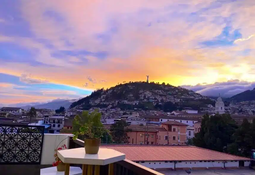Las imponentes vistas de la plaza, del volcán Pichincha y del casco antiguo te regalarán una estampa de postal cada atardecer